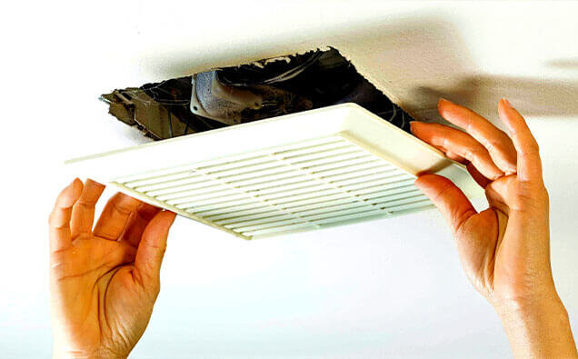 Professional installation of moisture-removing exhaust fans in bathrooms to prevent mould, condensation and damage to fixtures and paint.