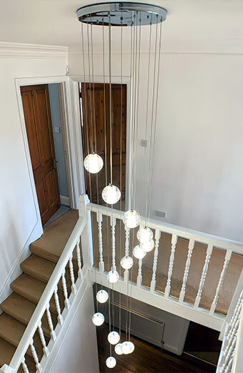 Professional installation of pendant lights, downlights, oyster lights, and chandeliers for homes, renovations, and commercial spaces.
